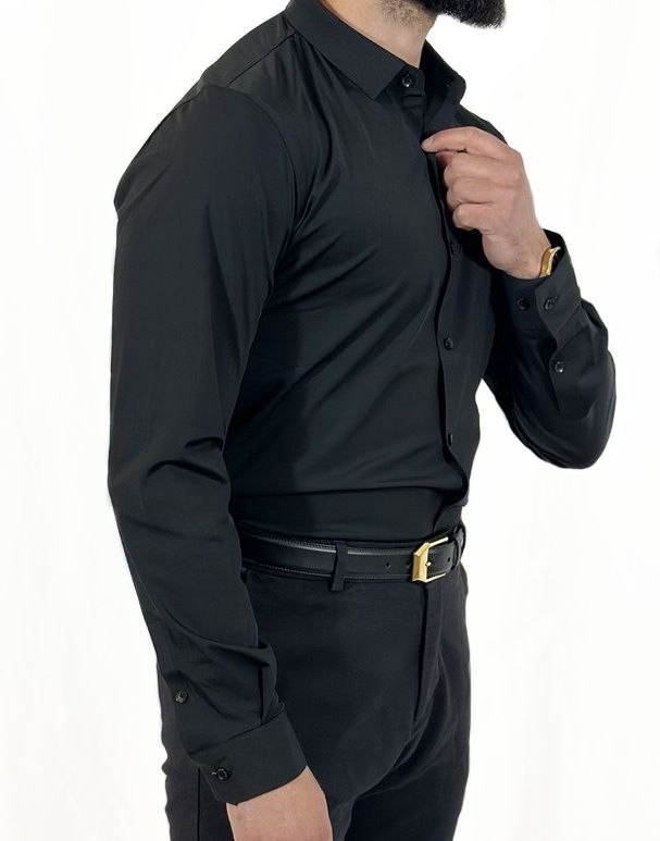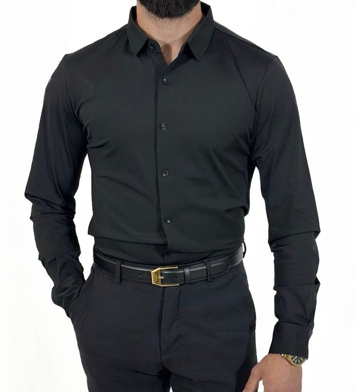 Zwart Slim Fit Overhemd met Lange Mouwen – Rekbaar voor Optimaal Comfort
