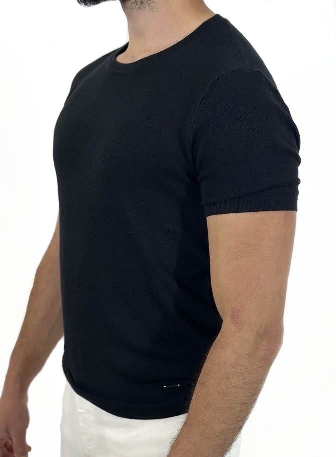 Zwart Slim Fit T-shirt met Geweven Patroon – Comfort en Klasse in Één