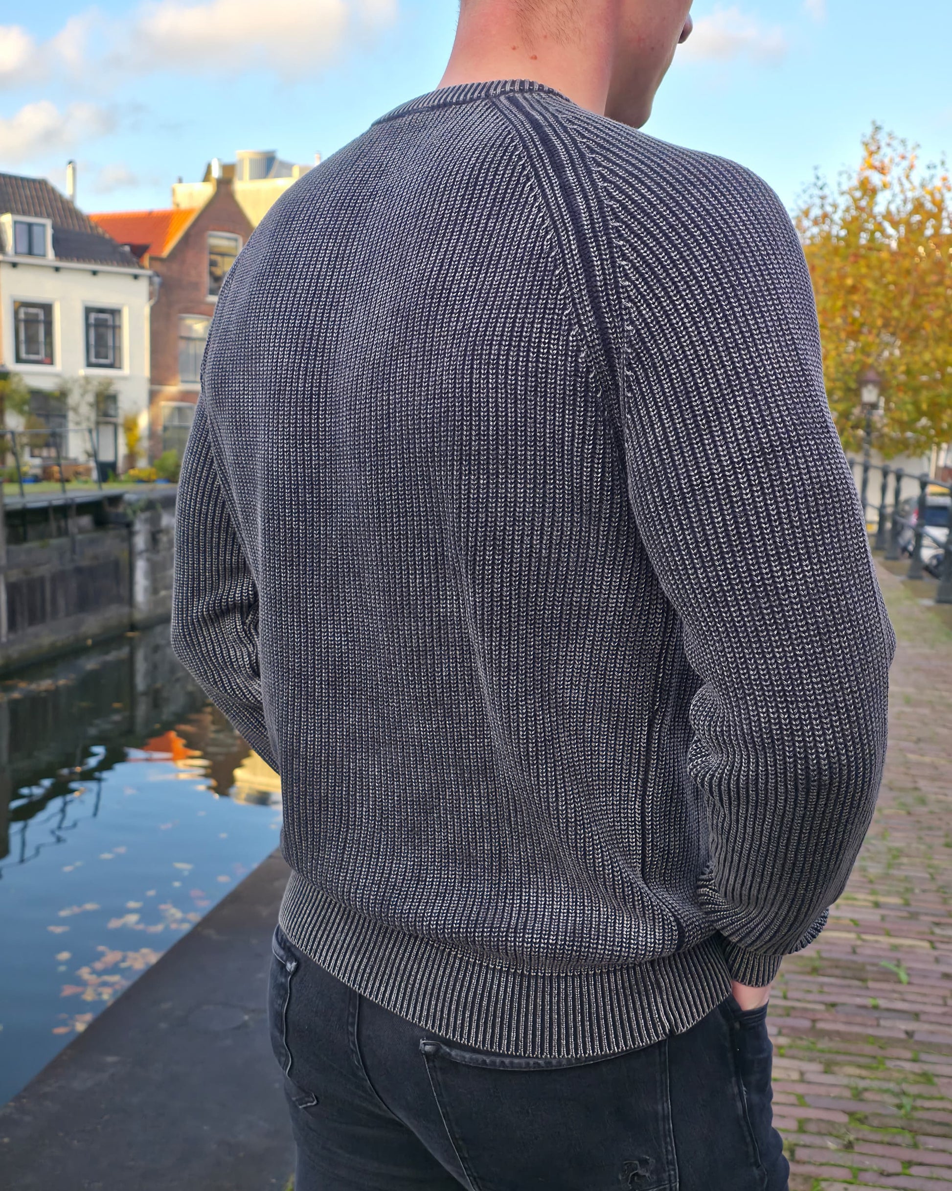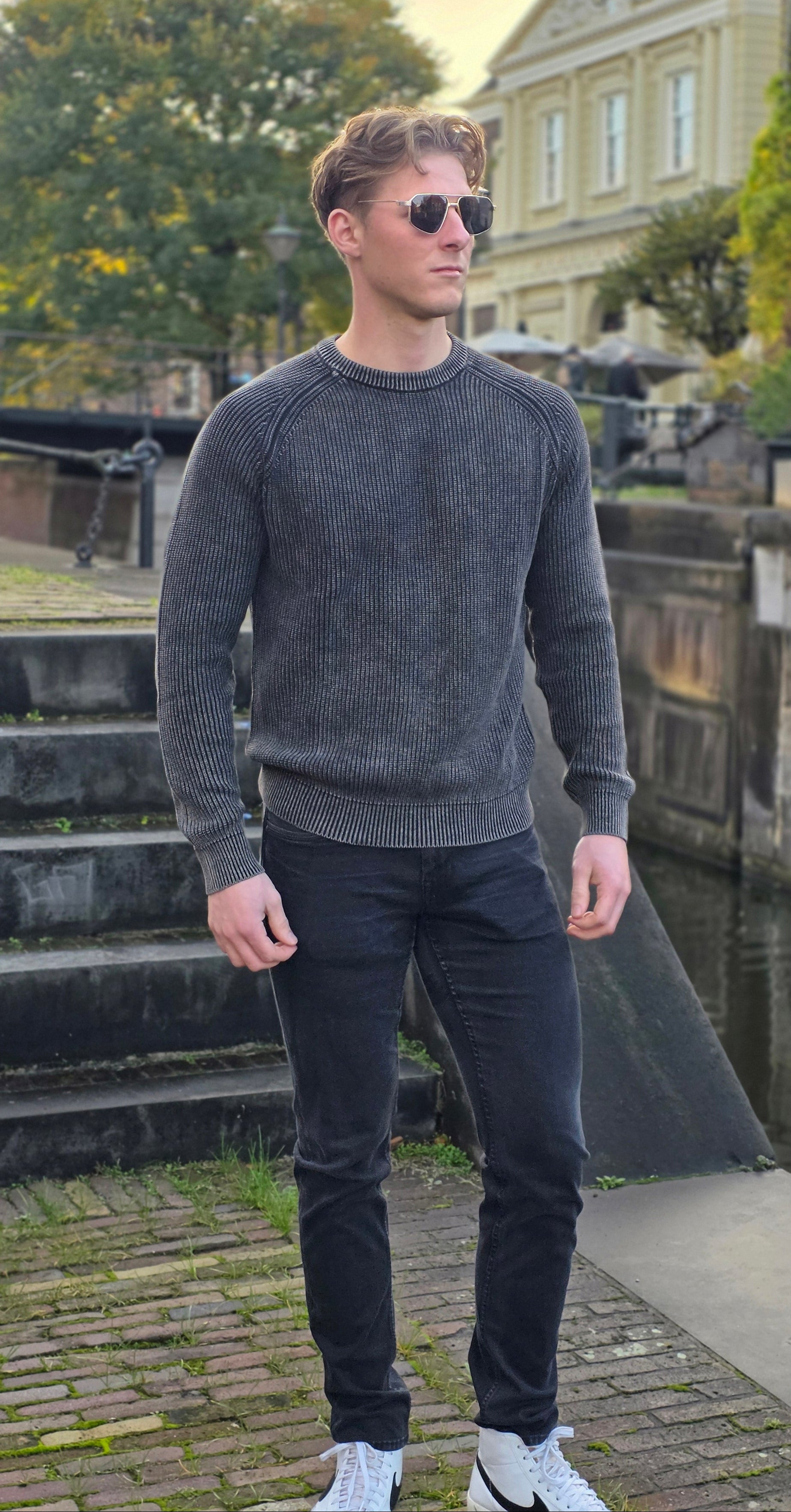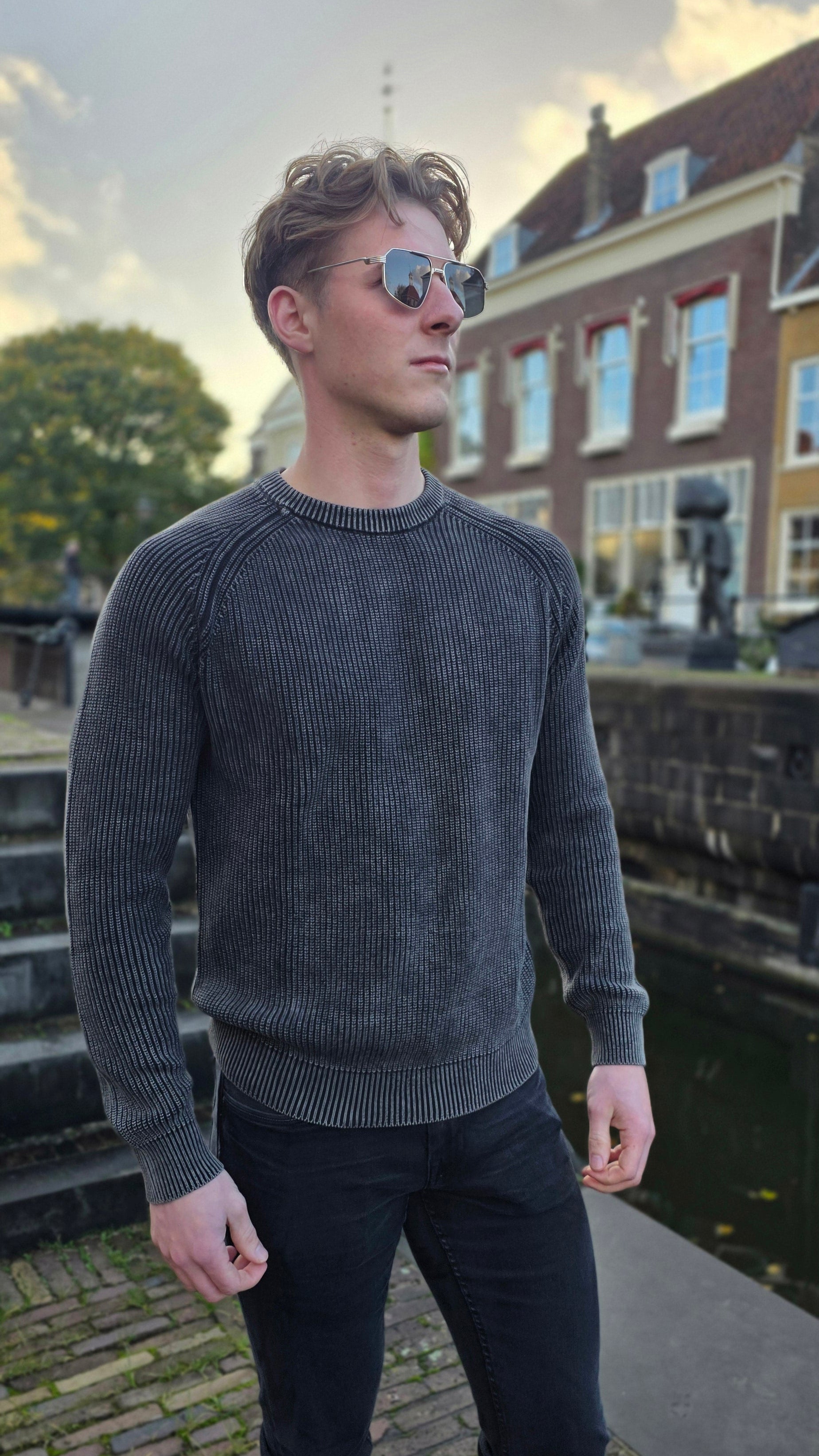 De Antraciet Rib Knit Sweater is een toonbeeld van ingetogen luxe.