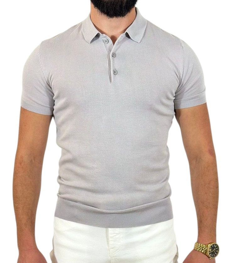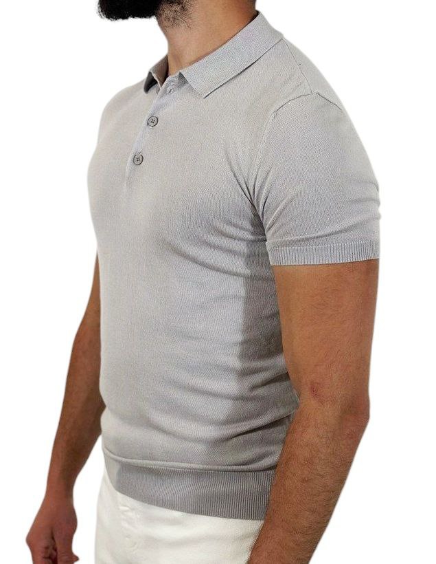 Lichtgrijze Gebreide Polo – Elegant, Comfortabel en Stijlvol